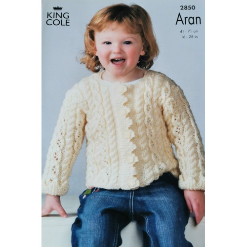 King Cole 2850 Aran Knitting Pattern for jumper and cardigan